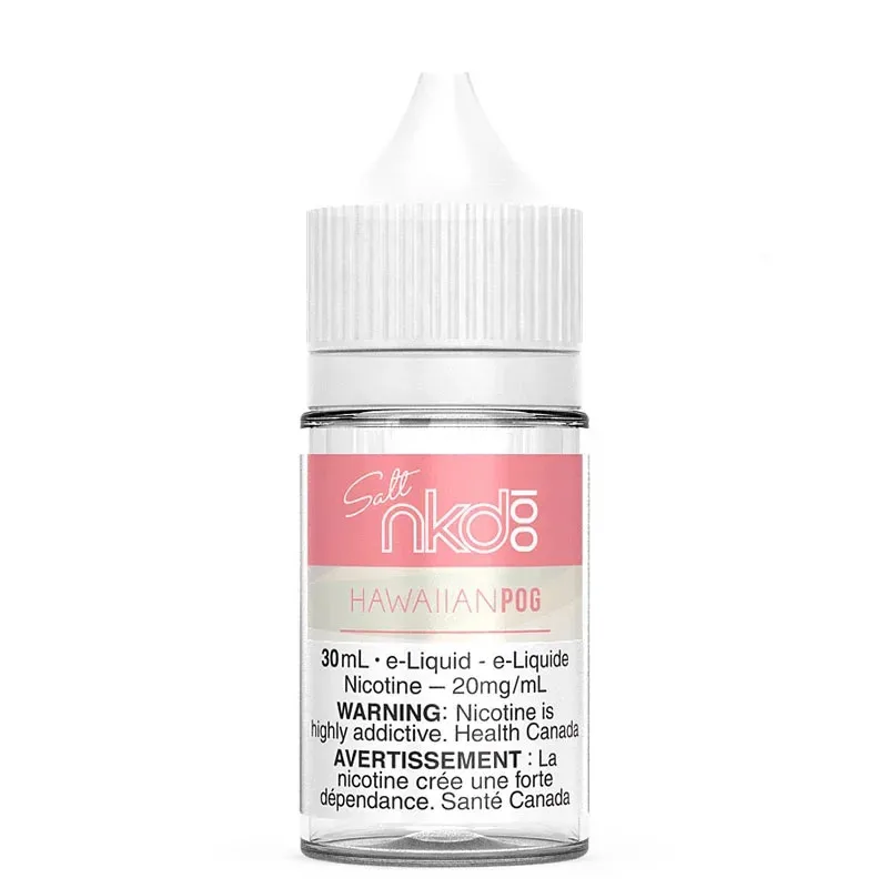 Hawaiian POG nic salts from the nkd 100 Salt line of e-liquids by Naked 100 delivers a sweet tropical taste with a smooth, refreshing blend of freshly squeezed orange juice, sweet and tart passion fruit, and creamy exotic guava.