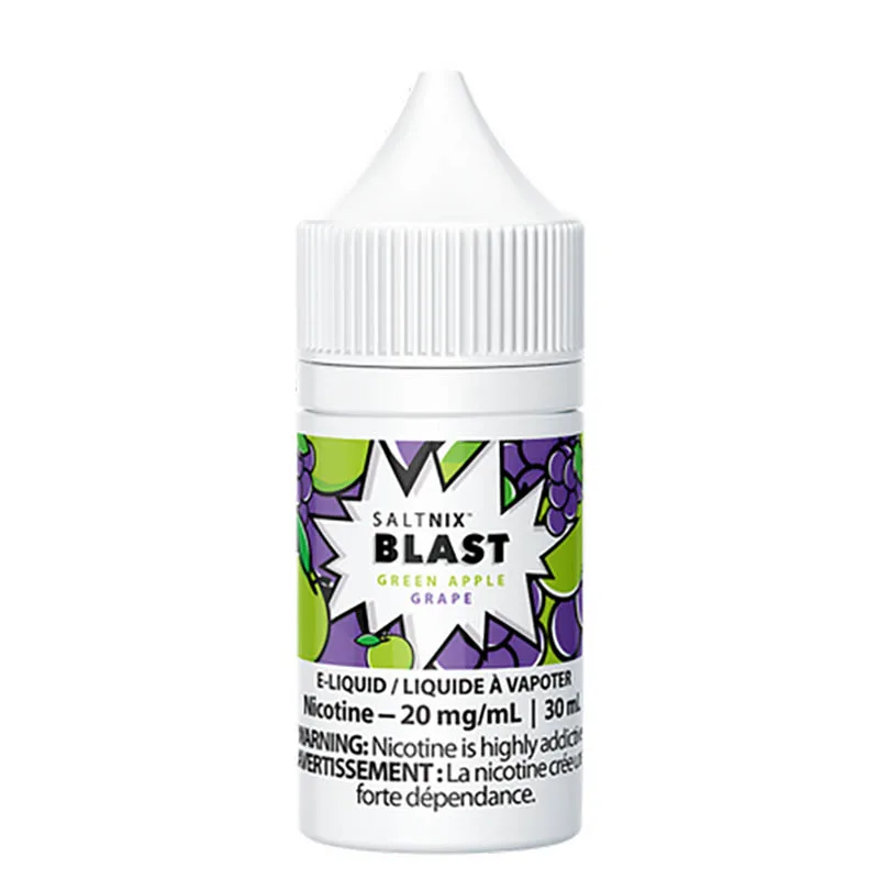 Salt Nix Blast: Green Apple Grape is a Nicotine Salt¹ e-liquid that delivers an explosion of tart and juicy fruit flavours in a mouthwatering mix.