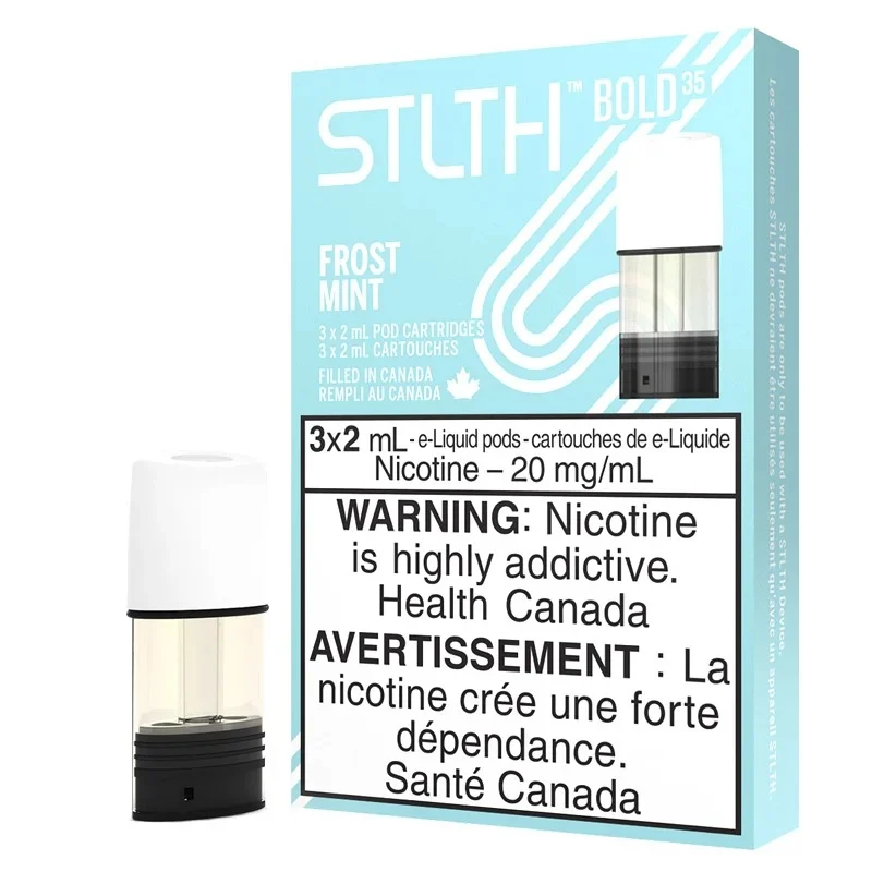 Cool, crisp, and refreshing, Frost by STLTH has a smooth peppermint inhale blended with a frosty spearmint exhale. STLTH Frost pods are available in packs of 3, prefilled by the manufacturer, and are exclusively compatible with the STLTH Device and STLTH Starter Kit. Each pod has a ceramic atomizer that produces smooth and satisfying vapor, and holds 2mL of e-liquid, with your choice of nicotine type and strength.