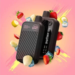 The STR8 UP Strawberry Banana flavour Beast Mode Max Disposable Vape by Flavour Beast has 20mL of e-liquid and a 850mAh rechargeable battery, an LED screen, and features 3 different power modes. Enjoy 18000 puffs of vapor with a single mesh coil at 11W with standard mode, 15000 puffs with dual coils at 17W with beast mode, or 12000 puffs with dual coils at 23W with max mode.