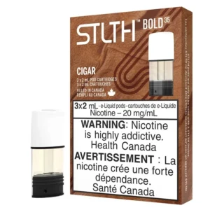 Availability may vary in store. Please note, this promotion applies exclusively STLTH Pods with Bold35 nicotine, and is available online only for a limited time. A 3 pack of STLTH Classic Cigar pods compatible with the STLTH Type - C Device and original STLTH closed pod device, prefilled with 2mL of e-liquid featuring a Cuban tobacco flavour with subtle notes of sweetness with your choice of nicotine type and strength. Introducing Bold³⁵ and Bold⁵⁰: unique hybrid nicotine blends optimized for the STLTH system with a harsher hit to replace the satisfaction of the original 35 & 50mg salts, using only 20mg.
