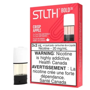 Please note, this promotion applies exclusively STLTH Pods with Bold35 nicotine, and is available online only for a limited time. A 3 pack of STLTH Classic Crisp Apple pods compatible with the STLTH Type - C Device and original STLTH closed pod device, prefilled with 2mL of e-liquid featuring a sweet red apple flavour with a tart granny smith finish, with your choice of nicotine type and strength. Introducing Bold³⁵ and Bold⁵⁰: unique hybrid nicotine blends optimized for the STLTH system with a harsher hit to replace the satisfaction of the original 35 & 50mg salts, using only 20mg.