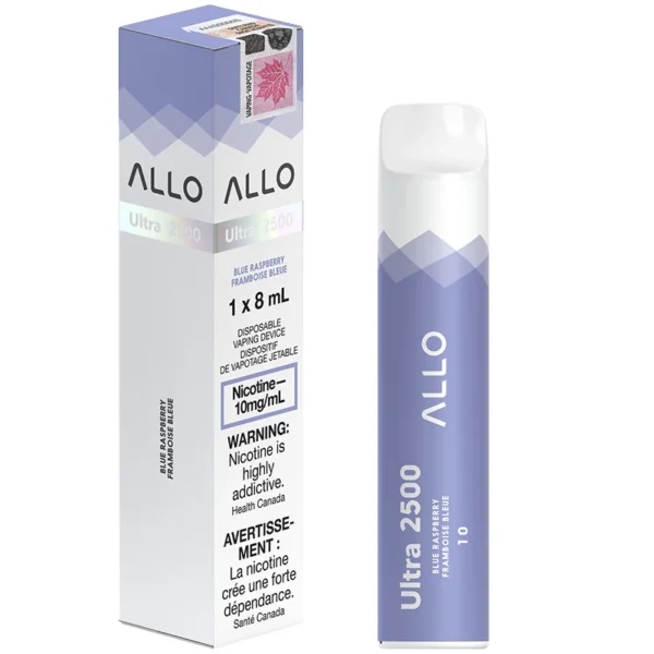 Allo Ultra 2500 devices in Canada are prefilled with 8mL of e-liquid with 10mg/mL or 20mg/mL of nicotine salts, and house a 1300mAh precharged battery powering a mesh coil.