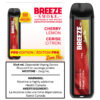 The Cherry Lemon flavour Breeze Pro Zero Nic Disposable Vape is prefilled with 4mL of e-liquid and delivers up to 2000 puffs of vapor with a 1000mAh battery.