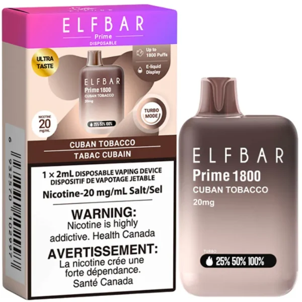 Elfbar Prime 1800 Disposable Vape: Cuban Tobacco (2mL)