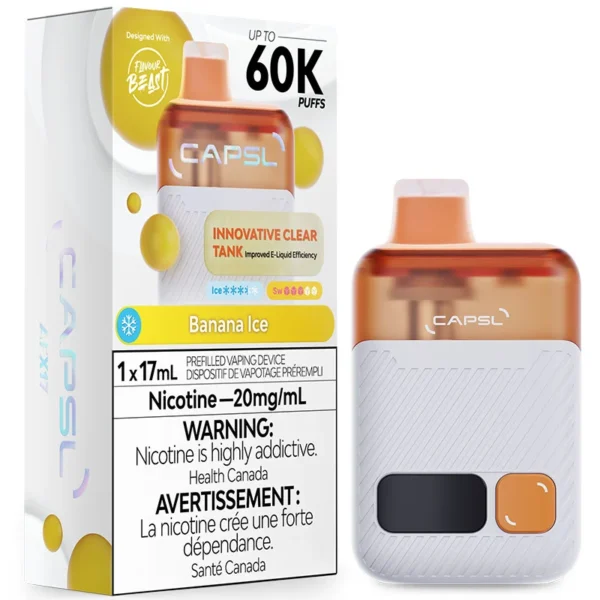 The Flavour Beast CAPSL AFX17 60K is a next gen disposable vape, featuring Auto Flux Tech that pumps e-liquid into the cotton, preventing dry hits during rapid puffs, delivering consistent flavour, and maximizing efficiency. Choose between Eco Mode for extended longevity with a single mesh coil at 9.5W, or Turbo Mode for an enriched flavour experience with a dual mesh coil at 18W. Powered by a 900mAh rechargeable battery, the Flavour Beast CAPSL 60K delivers up to 60K puffs of vapor – with adjustable airflow for a customized draw. The large screen clearly displays the battery charge and e-liquid level, which can also be directly viewed via the clear tank section.