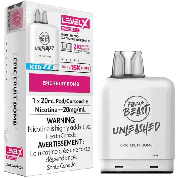 The original Level X Boost Pods by Flavour Beast are prefilled with 20mL of nic salt e-liquid and pair with the original Level X battery or the Level X Boost battery to deliver up to 15000 puffs of vapor. Use the 850mAh Level X Boost Battery to enable the dual mesh coils, and enjoy boosted amounts of vapor and flavour!