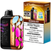 The Mango Ice flavour Linvo Rave 60000 Pro Disposable Vape delivers up to 60K puffs of vapor with 20mL of prefilled e-liquid and a dual mesh coil powered by an 850mAh rechargeable battery with fast charging, featuring adjustable airflow and multiple firing modes.