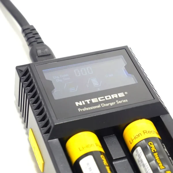 Compatible with any 18650, 18490, 18500, 18350, 26650, and even more type of batteries (see below), the Nitecore D2 will automatically detect which type of battery you are using between Li-Ion, IMR, INR, Ni-MH, Ni-Cd, selecting the appropriate charging mode accordingly (between CC, CV, dV/dt). You can also manually set it for use with LiFePO4 batteries.
