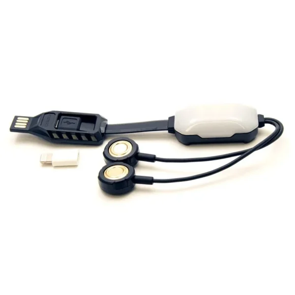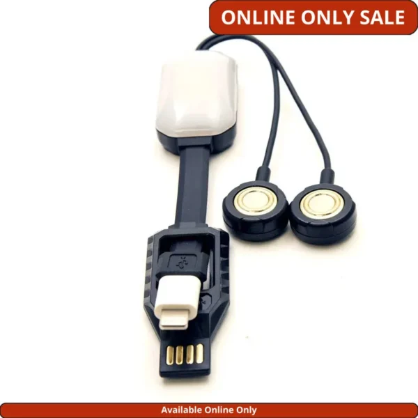 - Integrated micro USB charging cable & lightning adapter