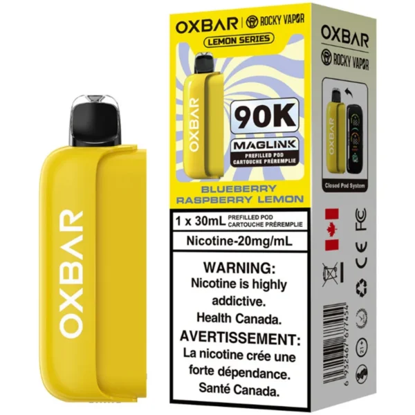 Please note: this Blueberry Raspberry Lemon flavour Oxbar x Rocky Vapor Maglink Pod requires a battery to operate, and it is not included with this product. If you don’t own a battery yet, please check out our listing of Oxbar x Rocky Vapor Maglink Hybrid Disposable Vape Kits below.