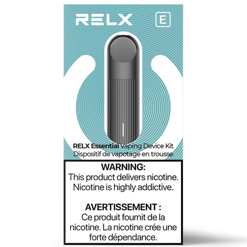 The RELX Essential is a compact, pocket friendly closed pod vaping device that is very convenient, intuitive, and easy to use, as well as Child Resistant Certified (CRC) in Canada. The slim grooved Essential Vaping Device body is durable but lightweight, and sits comfortably in your palm or fingers with a secure grip. The sensitive puff activated firing system responds in roughly 0.2 seconds with whisper quiet operation under 10dB, and is optimized for the perfect mouth to lung draw resistance using small side intake channels with only ± 0.4kPa of variance. The Essential has a 350mAh internal cell that lasts all day for light to average vapers with approximately 360 puffs on a full charge, and conveniently charges via the USB C port in under 40 minutes requiring little down time for more frequent users. The deep pod housing has a magnetic power connection, and is exclusively compatible with the RELX Pro Pod series of cartridges (not included with Essential Kit). The front side multicolor LED changes during use and while plugged in to indicate the battery charge level.