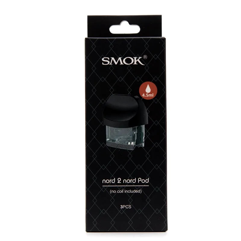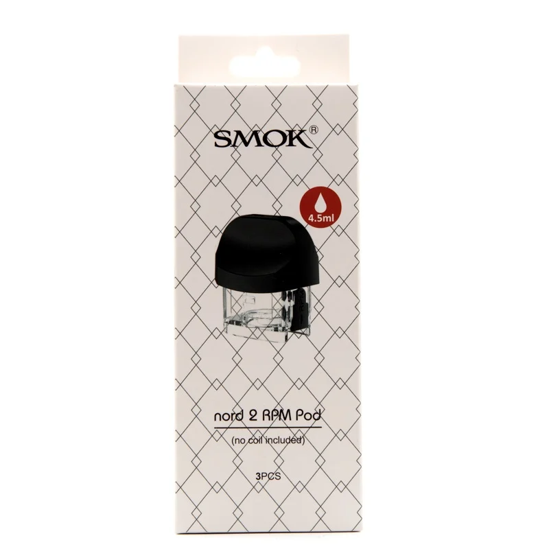 Replacement Pods for the SMOK Nord 2 40W Pod Kit. Two varieties with 4.5mL e-liquid capacity, each compatible with a specific set of coils: RPM & Nord.