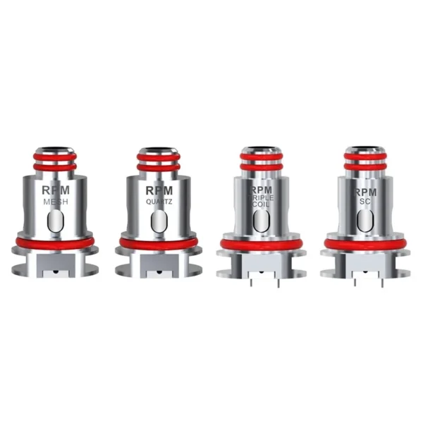 A pack of five press-fit RPM coils by SMOK. Replacement atomizers for use with the RPM40 Pod Mod Kit, Standard Pod.
