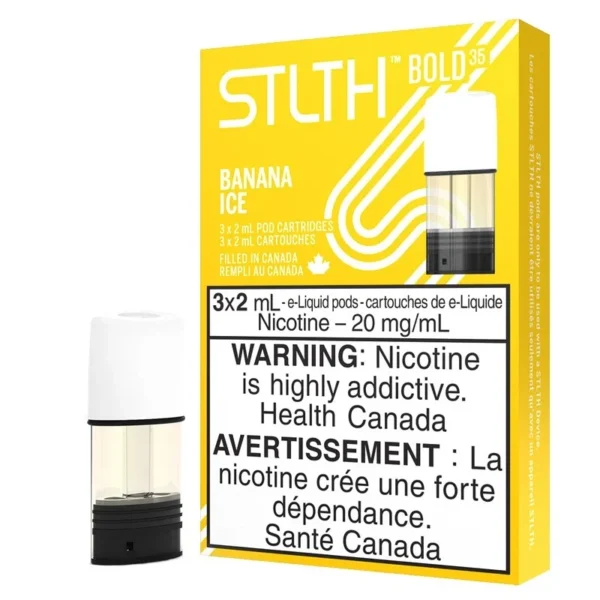 Succulent, cool, and satisfying, Banana Ice by STLTH is a sweet blend or ripe and creamy fruit with icy menthol. STLTH Banana Ice pods are available in packs of 3, prefilled by the manufacturer, and are exclusively compatible with the STLTH Device and STLTH Starter Kit. Each pod has a ceramic atomizer that produces smooth and satisfying vapor, and holds 2mL of e-liquid, with your choice of nicotine type and strength.