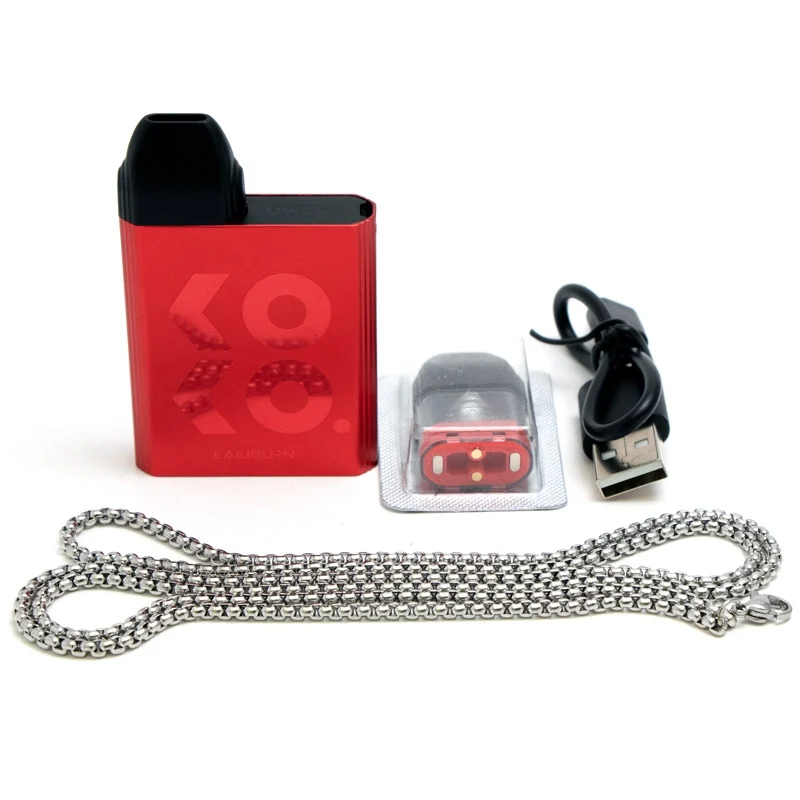 The new ergonomic small box frame easily fits in the palm of your hand and is incredibly pocket friendly. The airway and draw activation have also been updated for an improved mouth to lung draw that is more realistic and satisfying. The Caliburn Koko pods feature a new 1.2Ω parallel coil with increased vapour production and flavour but use the same press fit form factor as the originals, so they can be used in the original Caliburn vape kit, and the original Caliburn pods may be used in the Koko. The press on / pull off mouthpiece covers 2 fill ports, and two magnets securely hold the pod to the base after being lightly clipped into place.