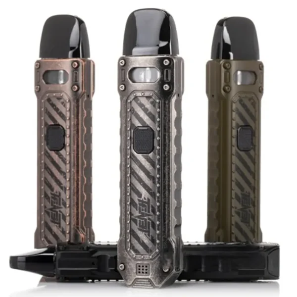 The Uwell Caliburn Tenet is the latest evolution in the popular series of open devices, featuring a futuristic metal body and compatibility with the G2 pod series featuring leak proof top fill and airflow control. The Caliburn Tenet also includes haptic feedback that confirms pod connection, and alerts to low battery. An LED at the base of the device changes color to indicate the remaining battery level, while in use or charging.