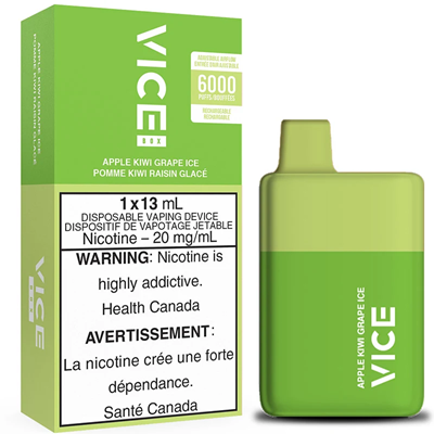 The Vice Box Apple Kiwi Grape Ice Disposable is the ideal on the go vape, meticulously designed to fit comfortably in the palm of your hand, and packed with succulent satisfaction sure to last heavy vapers for days! Other Vice Box flavours available here with free shipping available across Canada include: