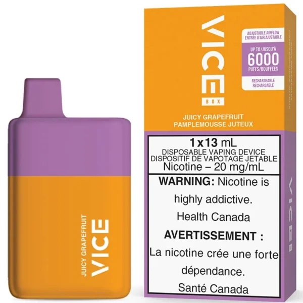 The Vice Box Juicy Grapefruit Disposable is the ideal on the go vape, meticulously designed to fit comfortably in the palm of your hand, and packed with succulent satisfaction sure to last heavy vapers for days! Other Vice Box flavours available here with free shipping available across Canada include: