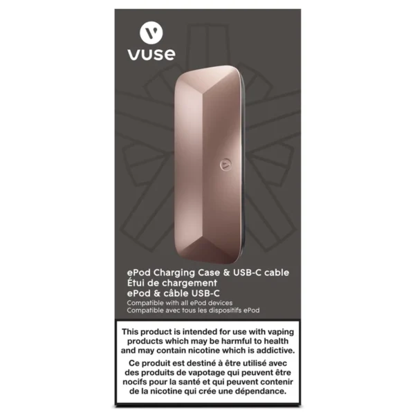 The Vuse ePod Portable Charging Case allows you to conveniently charge your vaping device on the go. Compatible with all versions of the ePod/ePod 2 device, the Charging Case fully charges via USB C in under 60 minutes and packs enough power to charge a device fully in 25 mintes, twice over. The magnetic charging base ensures the device remains securely connected, and the Portable Charging Case door firmly holds the device in place.