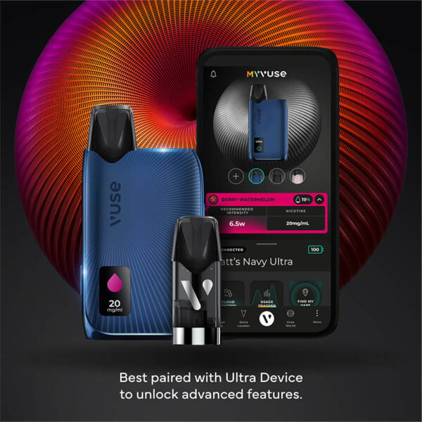 *Based on laboratory testing of newly manufactured product in a Vuse Ultra device (including recharging) at a puff duration of one second at the low function setting and may vary depending on power setting of device and on individuals usage behaviour.