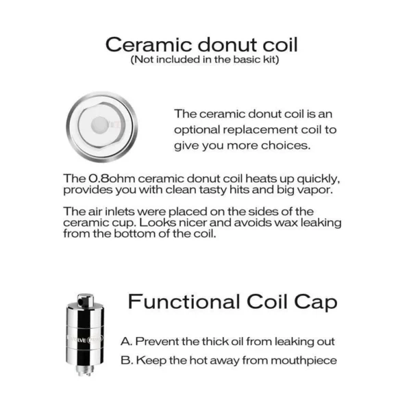 The defining and key aspect to the Yocan Evolve wax vaporizer is its innovative QDC technology , or Quartz coil. The key difference with this coil, is its use of quartz instead of traditional fiber wicks. The use of quartz allows for a more pure flavour, while also preserving the potency of the wax or concentrate.